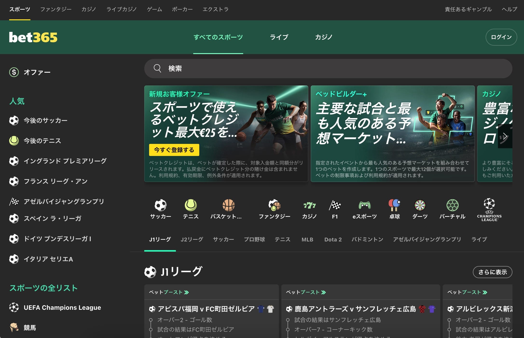 Bet365では日本のJリーグへのベッティングが可能です。Bet365では、J1、J2、J3の各リーグに対するさまざまなベッティングオプションが用意されています。例えば、試合の勝敗予想や得点者予想、ハンディキャップベット、そしてリアルタイムのライブベッティングなどが楽しめます。
